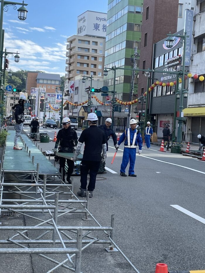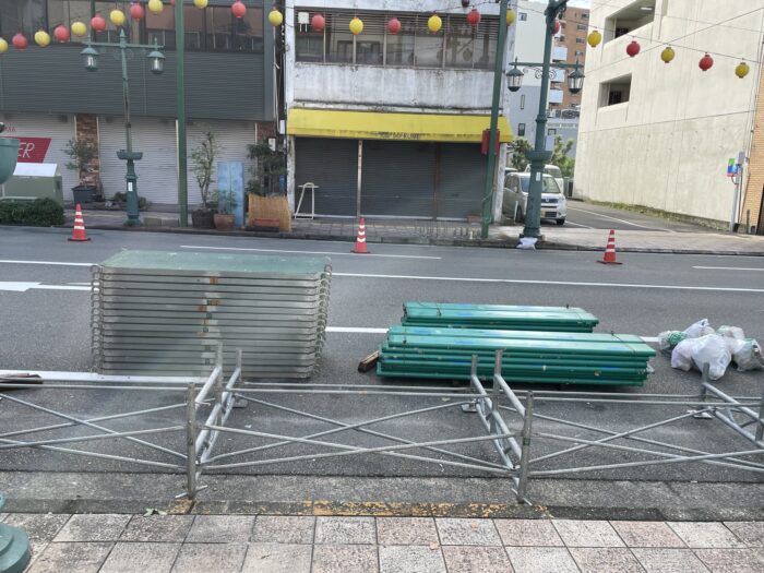 そして祭りが終わると直ぐ日常へ戻らなければならないのも人のさだめで、先週盆前に設営した桟敷は今朝から解体作業に突入しています。